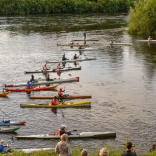 Start je v 6 hodin. Nasedáme do lodí a netradičně se startuje proti proudu, vzhledem k tomu, že řeka tady rychle teče. Po startovním výstřelu se všichni otáčí a závod je zahájen. Po několika kilometrech přichází těžká peřej, na kterou jsme byli upozorněni. Právem. Peřej totiž hned na úvod pokořila řadu závodníků, my jsme to naštěstí ustáli. Řeka má dost vody, a tak se pádluje pěkně. Honza nám trochu ujel, ale stále ho máme na dohled. Víme, že náš čas přijde.