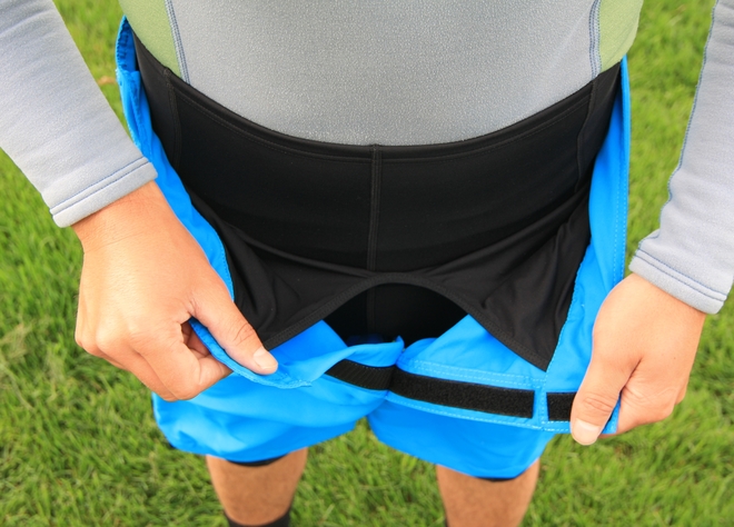 U vnitřních kraťasů si nelze nevšimnout velmi zajímavě řešeného pasu, který je výrazně prodloužen až k oblasti ledvin, aby byly tyto choulostivé orgány pořád v teple. K vnějším kraťasům jsou vnitřní neoprenové přichyceny pásem z lycry, aby kraťasy seděly tam, kde mají.