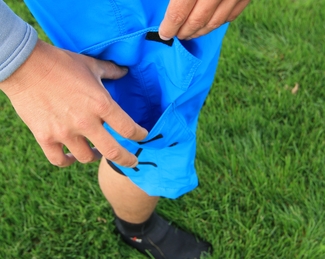 Na vnějších kraťasech oceňuju malou kapsičku na suchý zip. Asi bych do ní nedal nic cenného, ale například na tyčinku je použitelná vcelku bez problémů. Je správně umístěna, takže si pamlsek nerozmačkáte o bok lodi a zároveň vám z kapsy nebude vyjíždět. Svrchní kraťasy mají ještě v pase stahování opaskem, který je opatřen plastovou sponou, a poklopec na suché zipy, který oceníte v případě potřeby.