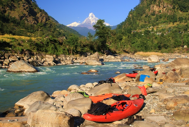 A když už jsme na místě určení, je čas sundat kajak ze střechy a půjdeme si zapádlovat. Teď přichází to hlavní, proč jsme sem vlastně přijeli. Nepálské řeky patří mezi nejlepší na světě, ať hovoříme o obtížnostech nebo okolní krajině. Hodí se jak na několikadenní raftové výlety, tak na kajakářská putování. Obtížnost si každý vybere podle sebe a můžeme vyrazit. S vodou je to tak, že je jí hodně. V podstatě všechny řeky spadají do kategorie „big water“. Po letním monzunu jsou koryta plná a jak podzim ubíhá, voda postupně klesá. Na to se můžete spolehnout a měli byste tomu přizpůsobit harmonogram svého výletu.