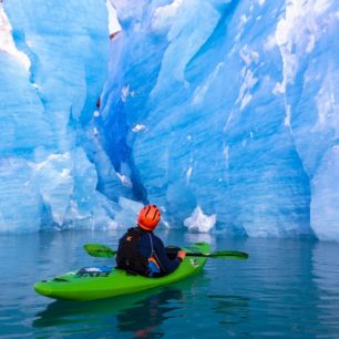 My vyrážíme po osmé hodině večerní, v půlce srpna zde stále přes noc není nijak zvlášť tma, takže není co řešit. Přepádlovat pět kilometrů po placaté vodě není nikterak náročné. Zvláště, když na druhé straně přehrady připádlujete přímo k čelu ledovce, který padá do vody. Tolik odstínů modré barvy jsem snad v životě neviděl. V bezprostřední blízkosti ledovce má člověk smíšené pocity obdivu a velkého respektu k přírodě jako takové.