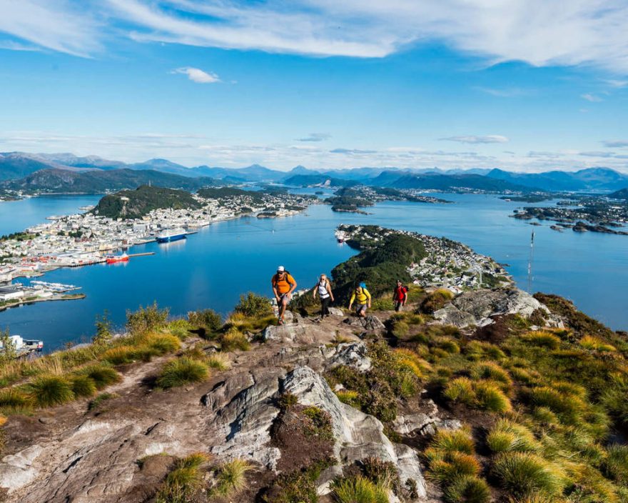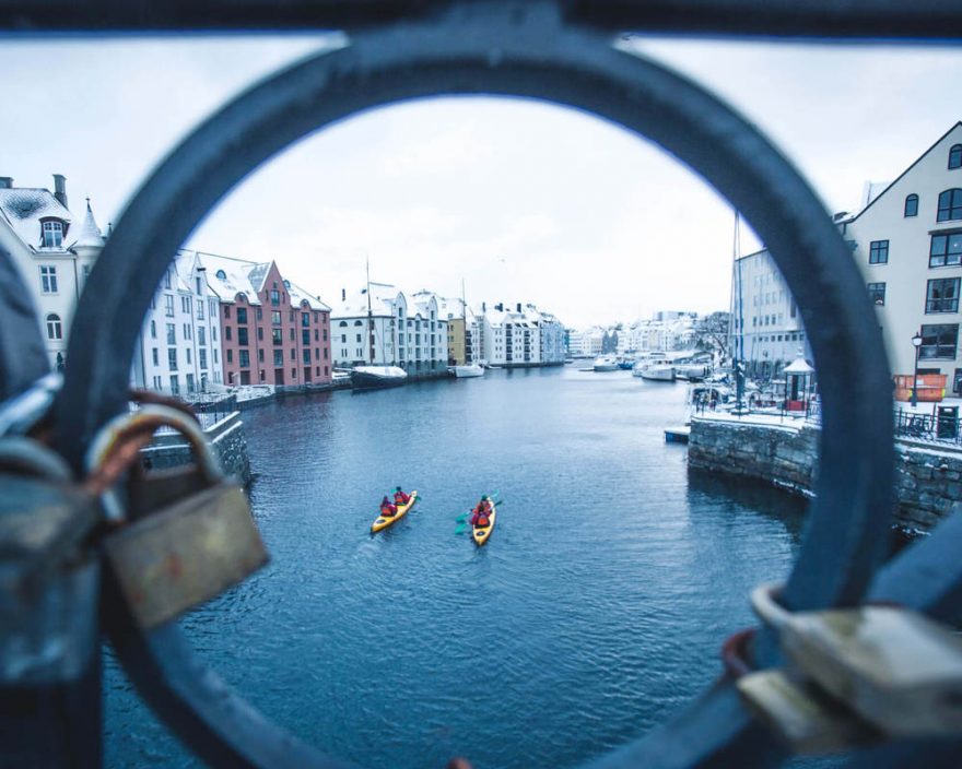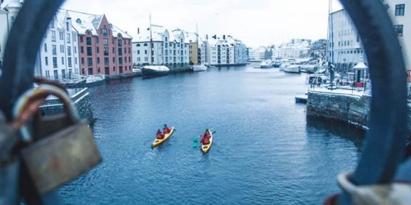 Mezi vyhlášené turistické cíle Norska lze s jistotou řadit secesní město Ålesund ležícím v regionu Møre og Romsdal. Toto město se se svými cirka 45 000 obyvateli řadí mezi významná norská sídla, je největším rybářským přístavem v zemi a také největším vývozcem ryb. Město je umístěné na třech ostrovech, jež jsou propojené mosty a to z něj činí skvělý cíl pro poznávání z vodní hladiny respektive z kajaku. Na vodní hladině zaručeně nepotkáte tolik lidí jako v uličkách města a když budete pozorní a nebudete se dívat jenom nahoru (ikdyž kulisy města rozhodně stojí za to), uvidíte v průzračné vodě při pobřeží bohatý mořský živote včetně mořských hvězdic. Pro ty, kdo mají raději náročnější výlety se nabízí i možnost uplout část poznávací cesty v kajaku a z něj vyrazit ještě na vycházku na jeden z okolních kopců, odkud je na „vodní město“ krásný výhled. Pro ty ještě náročnější je možné absolvovat plavbu okolo města i v zimních měsících, kdy je kulisa zasněžený krajiny zase o něco zajímavější, ovšem nedobrovolná koupel by mohla být trochu problém.