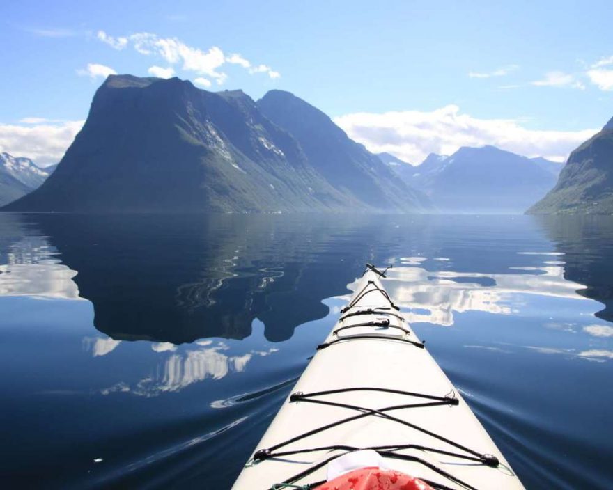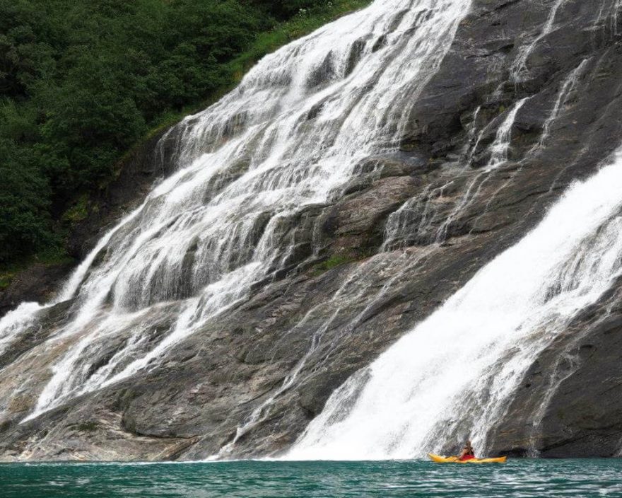 Poměrně snadným a krátkým, ale i tak krásným výletem po mořské hladině (pokud se dá hladině na konci fjordu ještě říkat mořská) je vyjížďka v okolí vesničky Hellesylt ležící v regionu Møre og Romsdal. Malá vesnička s cirka 250 obyvateli (kdybychom připočetli i všechny lidi z blízkých samot dostaneme se k číslu 600) nabízí absolutní klid a v okolí nedotčenou přírodu. Vodní hladinu tu tvoří konec fjordu Sunnylvsfjorden, který je jednou z odboček většího a známějšího Storfjodren. Během tříhodinového pádlování můžete obdivovat okolní kopcovitou krajinu s typickými oblými tvary, které po miliony let trpělivě vytvářel ledovec, a za prohlídku z perspektivy pádlera určitě stojí vodopády Hellesyltfossen. Až se na ně budete dívat, vzpomeňte si, že už je v kajaku taky někdo splul!