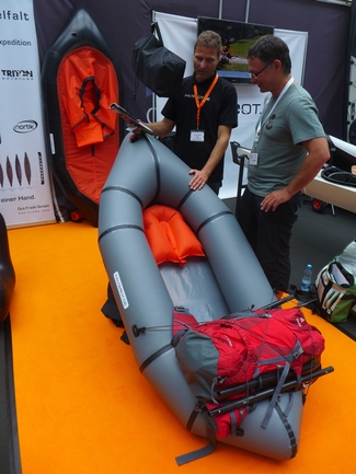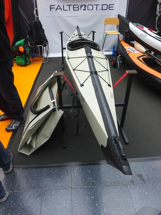 Hned naproti Gumotexu na stánku firmy Faltboot.de jsme narazili na další dvě lahůdky. Na rozdíl od Framury sice pouze ve fázi prototypů, oficiální představení proběhne až na PaddleExpo, nicméně jsou natolik zajímavé, že i tak stojí za zmínku.