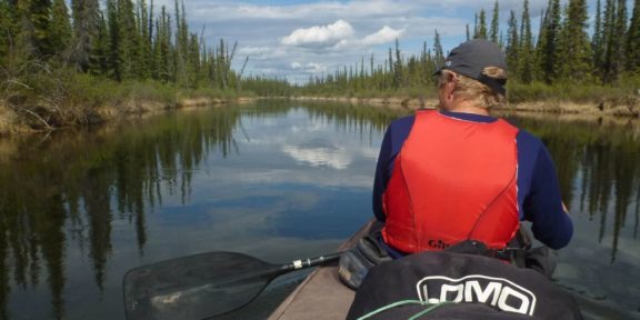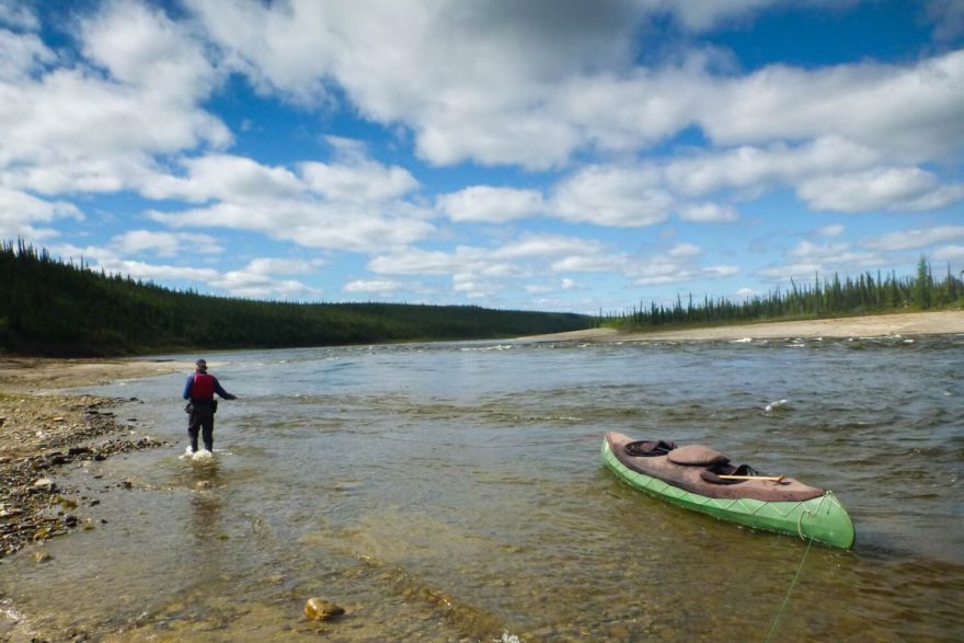 Voda pod lodí stále zpomaluje a pádlování je nekonečné, navíc se zdvihá severní vítr a déšť, a to na několik dní. Občas musíme kánoi proti větru dokonce koníčkovat. Dosahujeme hranice lesa a postupně se odkrývá tundra. Vstupujeme na eskymácké území.