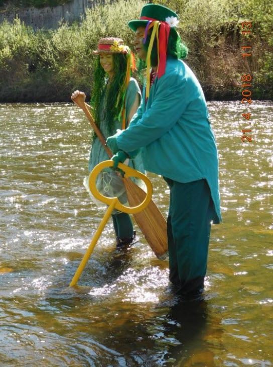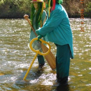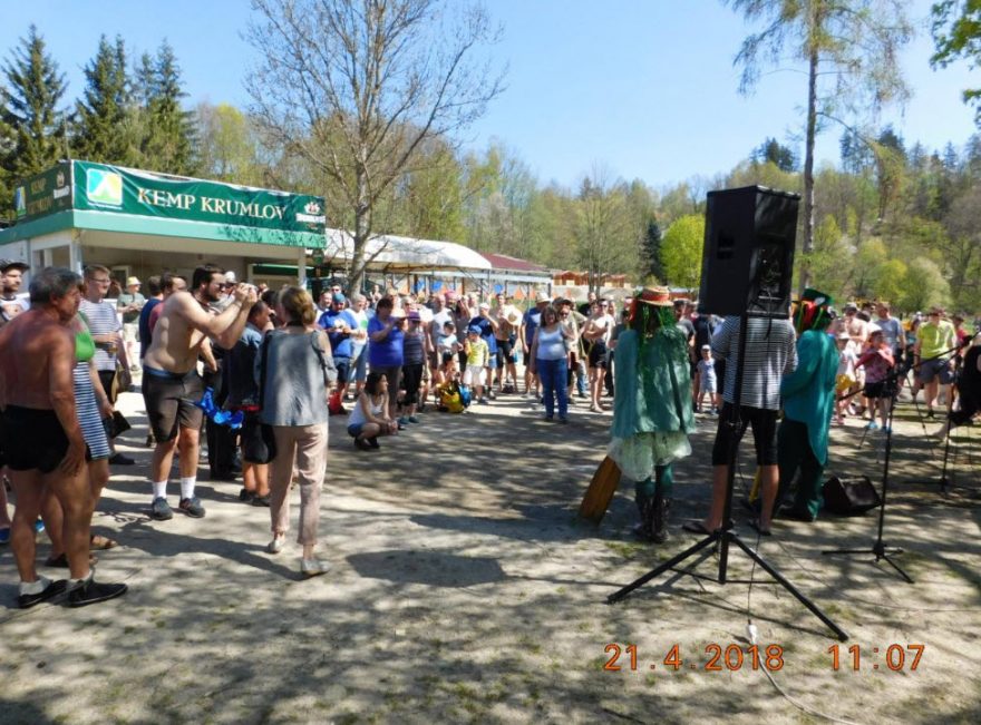 Zúčastněné půjčovny lodí odvedly také dobrou práci. Nepodařilo se nám spočítat účastníky, ale bylo nás moc. Po všech přípravách se krátce po jedenácté chopil mikrofonu veslař Vašek Chalupa a pozdravil vodáky. Po něm už patřilo slovo našemu vodníkovi s vodnicí, kteří velmi příjemně navodili tu správnou notu mezi vodáky.