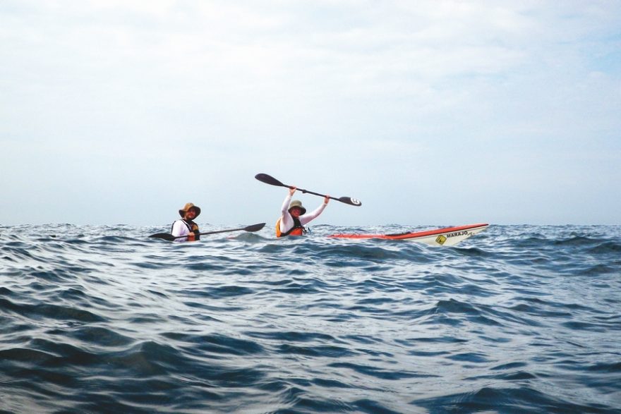 Další překvapení čeká při pohledu na používaná pádla, respektive tvar listů. Díky tomu, že seakajakování je v Brazílii poměrně úzce spjato se závodní odnoží tohohle sportu, není neobvyklé vidět i nezávodnickou veřejnost pádlovat s rasmusseny, wingy, či jak se různě říká moderním designům pádel, která si spojujeme víc se závodníky na štrekách nebo ve sjezdu. Polemiku, jestli to je tak dobře, nebo ne, tady nebudu rozvíjet, ale faktem je, že wingy (či rasmusseny) slaví i v mé vodácké škole veliké úspěchy. Tím končí výčet překvapení, zbytek vybavení je naprosto „normální“.