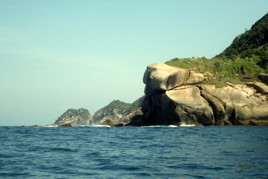 Třetí den pro nás znamenal zdolat technicky nejnáročnější úsek, mezi Ponta do Drago (Dračí mys) a Ponta do Meros. Proto jsme se zbytečně nezdržovali, pláž Aventureiros minuli blízko, ale bez zastavení. Zajímavé je, že ostrov Ilha Grande nejde obejít celý podél pobřeží, protože úsek mezi Parnaioca a Aventureiros je pro přístup po suchu uzavřený a není možné se ani vylodit, protože celá oblast je chráněnou rezervací nazvanou Parque Estadual Marinho do Aventureiro, která zahrnuje pláže Praia do Sul a Praia do Leste. Ochrana funguje, protože jsme kolem těchhle pláží projeli poměrně blízko, a vysloužili si tím okamžitou pozornost strážce parku.
