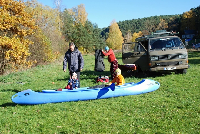 Vyplouvali jsme z louky „U Caisů“ na ř.km 18,6 nedaleko obce Vrcovice. Tady za normálního vodního stavu plavba po Otavě končí. Průtok v Písku byl 5,3 kubánce. Trochu mě překvapilo, že jsme tu sami, za teplého a slunečného listopadového dne jsem čekal víc vodáckých partiček.