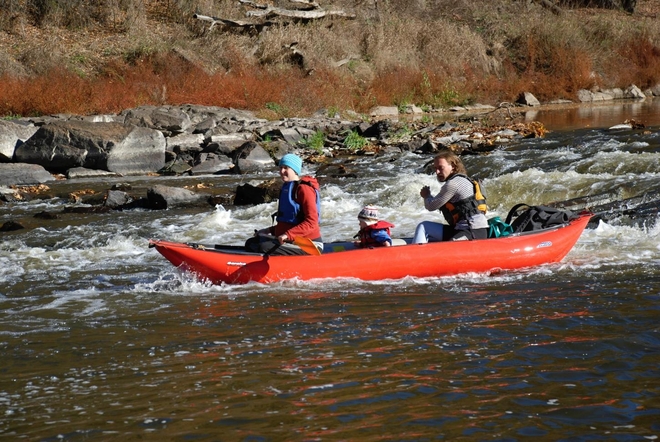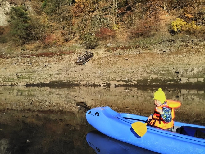 Celé splutí „pod hladinou Orlíku“ nám trvalo 4 hodinky včetně svačinek. Na palubách lodí jsme měli 4letého a dvouletého prcka, takže jsme rozhodně nespěchali. Spluli jsme 11,5 km po řece, která bývá pod hladinou jezera. Z toho 10 km proudem Otavy a posledních 1,5 km po vzduté hladině. Podle měření na www.chmi.cz hladina Orlíku stále klesá. Pokud by ještě o kus padla, tak se pod soutokem s Lomnicí objeví „Annenské peřeje“, dávný postrach vorařů. Někde jsem se dočetl, že mají být obtížností podobné Stvořidlům, ale výrazně delší.