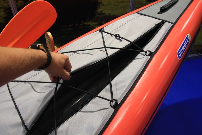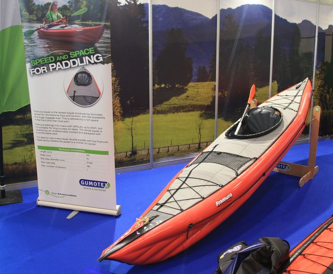 Tradičně největší expozici představil Gumotex, jehož stánku vévodil zbrusu nový kajak Framura (byl představen již na veletrhu OutDoor v červenci tohoto roku), který doplňuje řadu nafukovacích kajaků této firmy. Kajak je určen na moře a jezera, ale obstojí i na lehčích řekách do obtížnosti WW I. Díky délce 410 cm je loď nejrychlejší z celé flotily kajaků Gumotex a pod neodnímatelnou palubu, klasicky vyztuženou kovovými rozpěrami bortů, lze naložit velké množství bagáže na dlouhé výpravy (nosnost lodi je 180 kg). Paluba je opatřena podélnými zipy, které usnadňují přístup do nákladových prostor, ale po zapnutí také zajišťují nepromokavost paluby. Nechybí ani vylévací otvor uzavíratelný malou „kartičkou“, který se již osvědčil u Seawavu.
