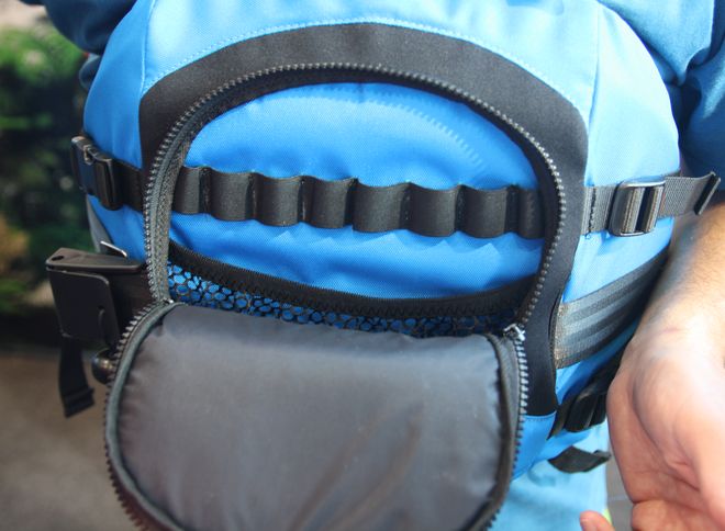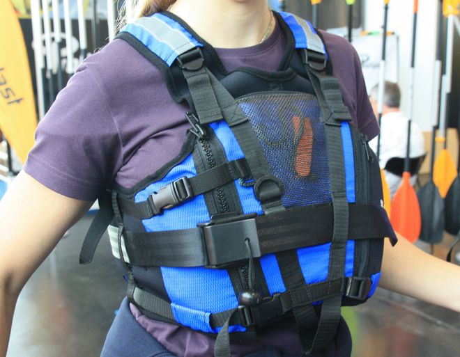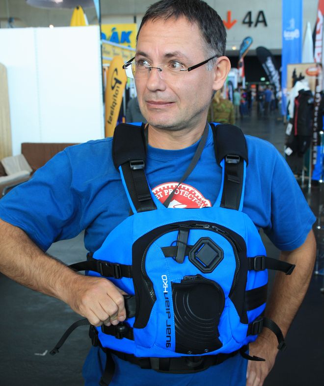 U HiKO sportu byla bezesporu největší novinkou nová vesta na divokou vodu pojmenovaná Guardian. Stále se jedná o „prototyp“, který už se ale testuje v ostrém provozu a v podstatě zbývá doladit jen poslední drobné detaily. Tedy podoba vesty je už dalo by se říci finální. Na první pohled zaujme přední kapsa, která je dělaná na několik částí a velmi prostorná. Na přední části velké kapsy je našitý držák na nůž, je zde dostupně uchycená píšťalka a také menší neoprenová kapsa tvarem přímo vybízející k umístění mobilního telefonu nebo nějakých sladkostí. Hlavní velká kapsa je dobře přístupná a lze ji doširoka otevřít. Uvnitř je mnoho prostoru, síťovaná kapsička a několik gumových oček pro lepší organizaci materiálu. Další zajímavostí je boční panel vesty, který se při zapínání zasouvá do předem připravených tunýlků na předním dílu vesty. Po zapnutí vás tak pěna dokonale obejme a vestu máte opravdu okolo celého těla. Zejména boční díly, které jsou také pěnové, zajistí, že budou žebra a dalších choulostivé části trupu dobře kryty. Stahování na boku je řešeno třemi popruhy, tedy je dostatečné, aby vesta skvěle padla. Další zajímavostí jsou pružná ramena, která po dotažení příjemně přilnou k tělu. Ve standardní výbavě vesty je také zadní kapsa na camelbag vyrobená z neoprenu. Doufáme, že Guardian bude brzy dokončen a dostane se nám do ruky k pořádnému testu. Na první pohled vypadá vydařeně.