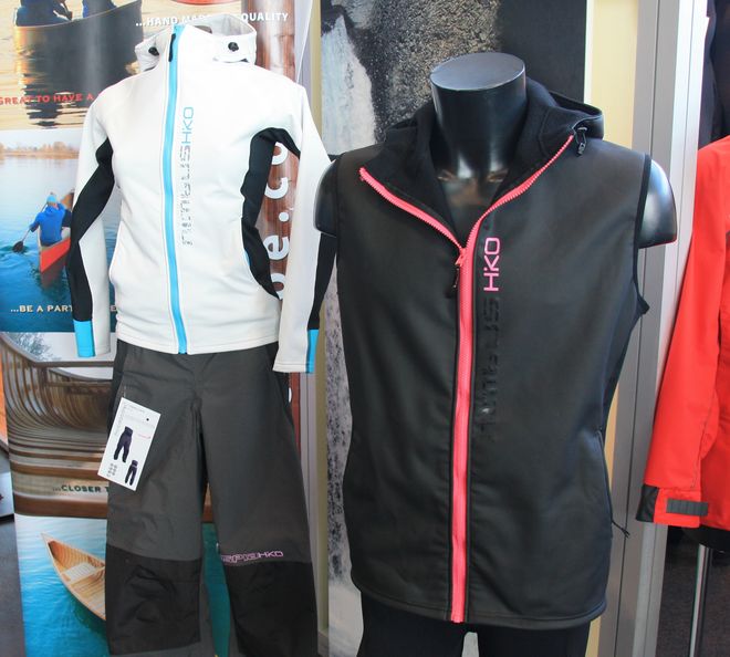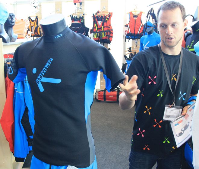 Jak jsme ale zvyklí nezůstalo u HiKA jen u dvou novinek. Dále tu čekaly nové modely suchých obleků vycházející z již osvědčeného obleku Quatro. Nyní přibyl oblek Odin, který bude k dostání i v seakajakářské verzi s kapucí a potom oblek Calypso, který je určen pro pádlující dívky a ženy. Tomu je přizpůsoben například umístěním zipu přes zadek. Do obleku se díky tomu dobře obléká a zároveň stačí tento jediný zip k vykonávání potřeb. U obou obleků byl představen i nový materiál 4O2, který je 4 vrstvý a měl by dobře dýchat.