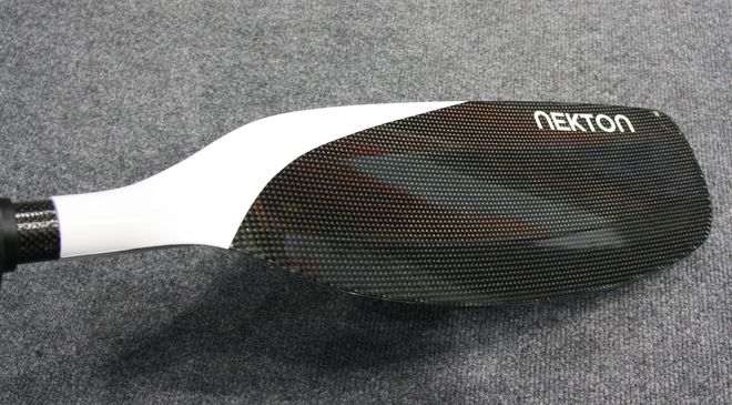 Na stánku TNP jsme si prohlédli novinku letošního roku, která už ale nějakou dobu brázdí vody a sice dětské tourinogvé pádlo Puffin (recenze viz. HYDRO 3/14) a potom novinku pro Paddle Expo, seakajakářské pádlo Nekton. Nekton je vyroben, pro TNP netradiční technologií, z karbonu a již na první pohled působí nádherně (jeho recenzi pro vás budeme mít v HYDRU 4/14). Zaujme zejména dvojité žebro na záběrové straně listu, které list, mimo to, že mu dává hezký vzhled, vyztužuje a umožňuje ho tak udělat příjemně tenký. Hmotnost 680 g u délky 210 cm asi není třeba komentovat, to je prostě skvělý údaj. Podle všeho bude pádlo zatím dostupné na užší žerdi o průměru 28 mm. Nápisy na pádle jsou reflexní, takže až budete vyrážet na noční výpravu, nikdo vás nepřehlédne. Cena pádla zatím není zcela jasná, ale bude určitě diametrálně odlišná od plastového sortimentu firmy.