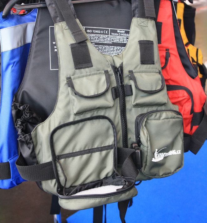 Dalším představeným modelem byla vesta pro vodáky – rybáře C-VODÁK fishing. Vesta má prostorné kapsy na veškeré vodácké drobnosti a jedna z kapes je dokonce po otevření fixována jako improvizovaný stoleček, na kterém lze zpracovávat návnadu, navazovat háčky apod. Zajímavý detail. Vesta se vyrábí v zelené (nenápadné barvě), ale i v červené pro případy, že rybáři vyráží na moře nebo do jiných exponovaných podmínek, kde může nastat situace, že je bude potřeba snadno zahlédnout.