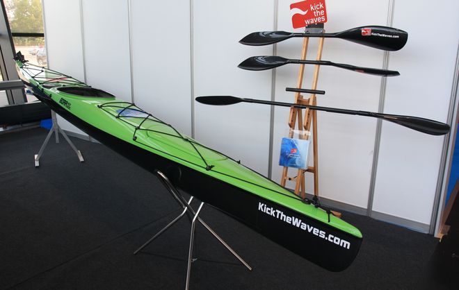 Mezi českými nováčky jsme na Paddle Expo také navštívili firmu Kick the Waves, která se specializuje na závodní lodě. Na stánku byla vystavena maratonská kánoe, kterou už ale většina českých vodáků dlouho zná, a jako novinka byl představen seakajak Bora, který je dostupný ve dvou verzích, klasické a vyztužené (s nějakým tím materiálem navíc) určené pro expediční pádlování, při kterém loď dostává hodně zabrat.