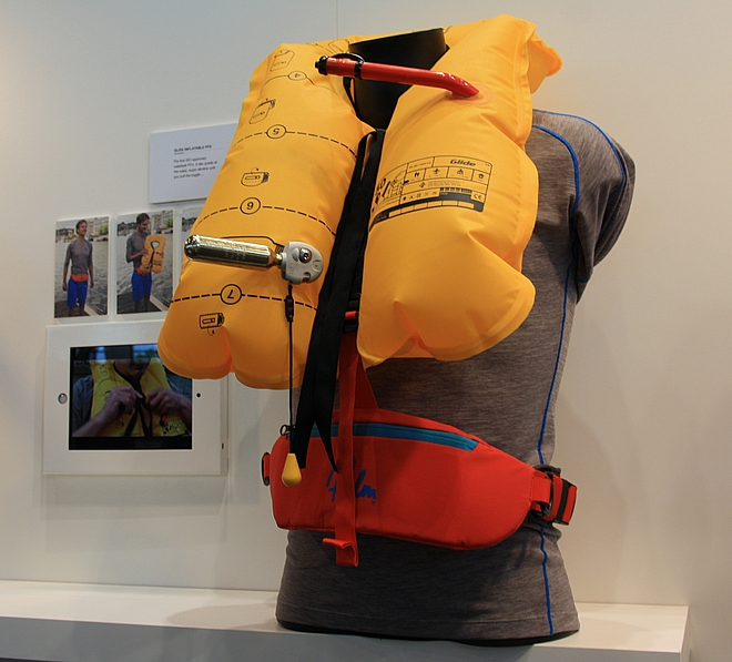 Další výraznou novinkou byla samonafukovací vesta Glide, která je uzavřena v ledvince a když se dostanete do potíží z připojené bombičky si zatažením vestu jednoduše nafouknete během mžiku. Něco podobného jsme loni viděli u Restube a zdá se, že k takovýmto řešením začnou výrobci přistupovat stále častěji. Určení je jasné – turistika, paddleboarding a pohyb kdekoliv, kde není třeba mít stále oblečenou vestu, ale když přijde do tuhého mít jí po ruce a rychle připravenou k použití.