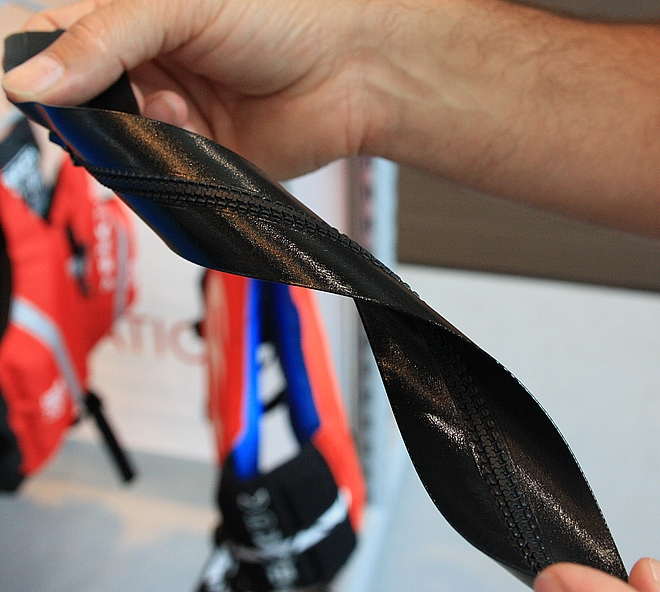 Z dalších novinek nám byly ještě předvedeny plastové zipy do suchých obleků, které jsou tenčí a tudíž pružnější. Nebudou tedy tolik bránit v pohybu a zabírat místo tam, kde není třeba. Uvidíme, zda také něco vydrží.