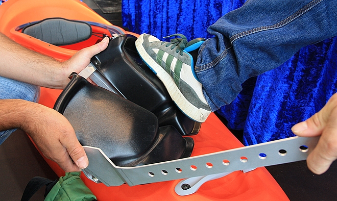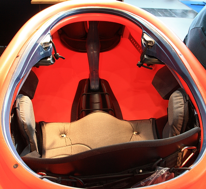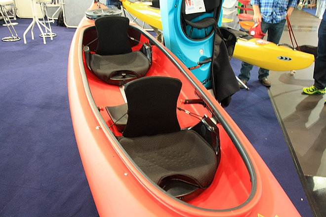 Ano, cena je vysoká, ale na druhou stranu za ní dostáváte mnoho zajímavých řešení, mnohdy až na vědecké bázi. Lodě jsou vyráběny vyfukovací technologií (používá například Prijon), od čehož si výrobci slibují větší výdrž. Pokud se budeme bavit o výbavě PRO, pak se musíme postavit také u výborně polstrované (bordurou), pohodlné a dobře nastavitelné sedačky – bylo nám vysvětleno, že není třeba příliš pracovat s těžištěm, že to vychytali už sami výrobci, ale je třeba si pořádně nastavit veškeré opěrky. Zádová opěrka se dotahuje na šňůrky (známé například od Jacksonu). Střední výztuha paluby je u verze PRO vyrobena z kompozitového materiálu a jejím úkolem je nejen podpírat horní palubu, ale také roznášet tlak na palubu do zbytku lodi. Toho výrobci docílili propojením vzpěry s kolejnicí pod sedačkou a rozepřením do dna. Zajímavostí je také šetrné řešení některých detailů vůči kajakářovu zdraví. Nožní opěrky jsou navrženy tak, aby noha získávala podporu pro celé chodidlo (většinou jsme v lodi opření o špičky nebo přední část nohy, tedy s uvolněným kotníkem, který je při nárazech náchylný k poranění) a navíc je opěrka navržena tak, aby noha v kotníku měla úhel 100°, což je po ni prý přirozenější a zdravější pozice. Zádová opěrka a sedačka jsou navrženy tak, aby držely páteř kajakáře vzpřímeně, tedy opět v co možná nejzdravější poloze.