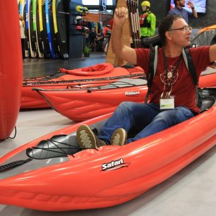 U Gumotexu nás čekala jediná novinka, a sice inovovaný kajak Safari, nazvaný Safari 330. Výrobce loď oproti předchozí verzi prodloužil, aby byla rychlejší, rozšířil, aby byla stabilnější, dno dostalo oka pro připevnění flosny, kterou využijete zejména na větších a klidných vodních plochách, obě „hrany“ jsou opatřeny vylévacími otvory po celé délce a inovace se dočkala i sedačka, který je nyní „naducanější“ a tedy bude pohodlnější. Zkrátka, všechny inovace byly podřízeny tomu, aby se na Safari 330 daly sjíždět opravdu náročné terény (údajně až do WW IV). Safari 330 máme na jaro slíbené na testování, tak uvidíme, jak se mu povede na Labi pod Labskou nebo Kamenici z Tanvaldu, kam ho určitě budeme chtít vytáhnout.