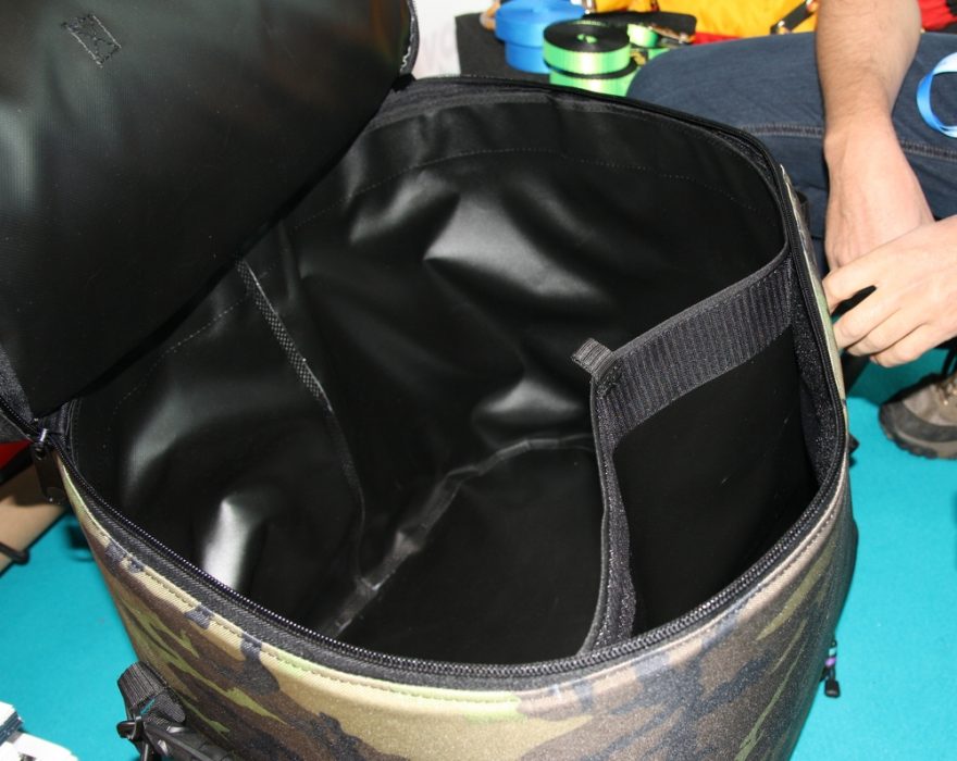 Druhou novinkou je víceúčelová bedna určená rovněž pro rybáře. Bedna má dvouvrstvý plášť, který má mezi vrstvami vsunuté plastové desky, které brání borcení stěn. Plast je tak odolný, že lze na bedně i sedět, ačkoliv náš test to nepotvrdil. Samozřejmě je ale plastová výztuž vyndavací, aby se bedna lépe skládala pro transport. Vnitřní část bedny je z vodotěsného materiálu, takže není problém do ní naložit cokoliv mokrého a přitom zůstane okolí suché. I tato část bedny je zcela odnímatelná.
