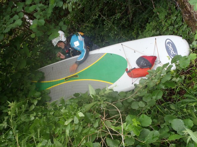 Po dvou dnech chození v horách, kde jsem si užili spoustu legrace se v sobotu brzy budíme, ale přibrzďuje nás déšť. Brzy ale s chutí vyrážíme k nasedačce na Teichl k most v Pichlu. Danča si oblékla neoprenky naruby a bundu obráceně – to však zjistila až na řece. Zpočátku bylo koryto docela suché, hodně se drhlo, postupem ale přítoky dodávaly více vody a říčka se sevřela do soutěsky ze slepence. Řeka byla hodně technická, i proto byl výlet velmi náročný. Už zpočáku se mi podařilo naštípnout list pádla, naštěstí ale držel. Jízda nám celkem šla, až na pár vyběhnutí z prkna, když se drhlo. Nad jezem už jsme byly celkem vyčerpané a já Danče slíbila, že už brzy budeme vystupovat, jen co se skály rozestoupí a bude přístup k silnici. Bohužel následovaly další skály a nemožnost výstupu. Padlo i pár slz a utěšování, ale nakonec jsme úspěšně vystoupily u mostu ve St. Pankratzu. Poslední brek těsně před vysedačkou. Celková délka plavby 11,5 km a čas cca 4,5 hod, ale docela makačka. Prkna jsme schovaly do křoví a vypravily se na stopa. Začalo pršet, a tak jsme se schovaly v budce. Střídavě jedna nebo druhá vybíhala ven. Pak déšť ustal a tak obě vylézáme ze skrýše na stopa. Jedno auto přibrzdilo, ale projelo dál, pak se náhle vrací a obrací před námi. To je podezřelé, chlapík navíc vypadá dost divně, smrdí cigaretami a lihem a auto je jen třídvéřák. Přesto nasedáme a Danča se zděšeně ptá, jak se vzadu posunuje sedačka, aby se dalo zastavit. Klidným hlasem jí odpovídám, ať se nebojí, že mám s sebou vestu s nožem, ha na co všechno se nehodí. Zdvořile s pánem konverzuji, naštěstí nejedeme daleko a konečně vyskakujeme. Hurá zpátky pro boardy a přejezd na Steyer. Ani tady nám nedělá problém najít si pěkný kempovací plácek u řeky, ještě véča a brzo do postele načerpat dalších sil. Nutno ještě dodat report o černé díře – prostor za sedadlem spolujezdce, který zázračně držel výbornou teplotu piva, zato pohlcoval věci z okolí, které jsme hledaly.