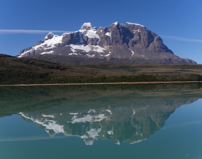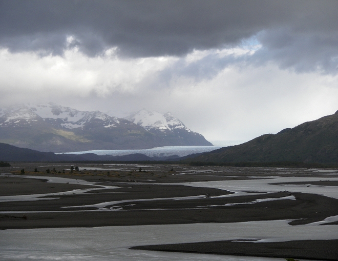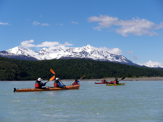 Při příjezdu do delty řeky Tyndall jsme se trochu podivili, protože byla úplně zalitá vodou, z hladiny čouhaly jen špičky keřů. Předstírali jsme, že je to normální, a vyrazili proti proudu. Řeky v Patagonii jsou stejně tak nevyzpytatelné jako počasí, protože jejich průtok závisí na tání obřích ledovcových ploch. Řeka Tyndall vytéká ze stejnojmenného jezera, na jehož konci taje a ustupuje opět stejnojmenný ledovec, který je jedním ze splazů Jižního ledovcového pole. A tento den tání zřejmě překonalo všechna očekávání. Asi po kilometru pádlování proti proudu to začaly posádky postupně vzdávat. Nejdříve Švýcarka, poté Vegouši a nakonec i Irové. Vytáhli jsme všechny možné šňůry a s kajaky na vodítku se začali probojovávat proti proudu pěšky. Jediný, kdo se držel, byl Pan Berle, který se tu a tam nechal popotáhnout Serkanem. Z dvou set metrů, které původně sliboval Serkan, se nakonec vyklubaly čtyři kilometry silného protiproudu. Přinutit šest klientů, z toho tři nemožné a jednoho o berlích, aby se po pás v ledovcové vodě brodili proti proudu řeky a vlekli za sebou naložené kajaky, budu myslím dlouho považovat za vrchol průvodcovského umění.