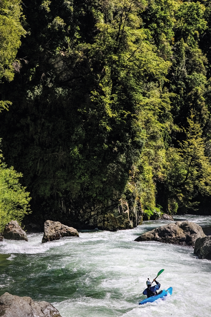 Přijíždíme do Pucónu – centrum turismu a současná „meka“ kayakingu. V dosahu je hned několik známých řek, ale opět prší a všechny mají hodně vody, ty nejznámější se nedají jezdit. Nejprve jedeme na Trancuru, vodnatá řeka nejblíže městu. Místňák José se nám svěřil, že Trancuru za tak velké vody ještě nejel, takže jsme trochu nervózní. A řeka hned ukazuje svou sílu – regulérní big water. Peřeje kolem vodopádu Mariman splývají do jednoho velkého nesmyslu, takže poctivě asi 500 metrů neseme. I na spodním úseku jsou obrovské válce. José nám to najíždí a my akorát koukáme, kolem čeho projíždíme! Řeku přes léto hojně využívají raftové společnosti, ale díky hodně velkému nadstavu jsme na řece sami. Hned můj druhý den v Pucónu volá kamarád Momo, který v létě na řece Futaleufu provozuje bufet. Odjíždí tam už večer, o týden dříve než měl v plánu. Můžu jet s ním a bydlet u něj. Je to super nabídka, neváhám a beru.