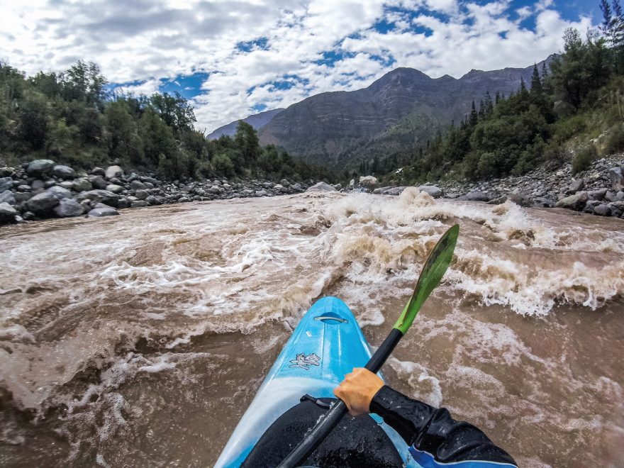 Rio Maipo – krátce po příletu sedím na spodním úseku řeky Yesso. Ta je přítokem velké ledovcové řeky Maipo a také tradiční nasedačkou na Maipo. Nad soutokem s Yessem je Maipo v podstatě nesjízdné a Yesso je prý na rozjezd trochu moc. Je teplo a všechno má velkou vodu. I Maipo. Takže nervozita stoupá.