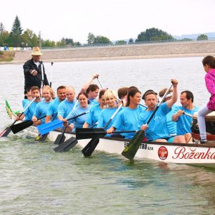 O skvělé zázemí závodu na pláži „U Vrbiček“ se staraly snad všechny posádky svými pokřiky a povzbuzováním. Mezi 14 – 15 hodinou nám na hladinu Plumlovské přehrady vyrazily celkem 3 lodě plné dětí a jízdu si náležitě užily. Poté byly na programu finálové jízdy a plavby na 1 kilometr. Kolem 18 hodiny jsme vyhlásili výsledky i cenu pro absolutně nejrychlejší posádku dne, která si odnesla jako třešničku speciální pohár, odznak plumlovského draka a exkluzivní dort od Pall-a-chinky od blondýnky.
