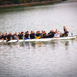 Nedělní ráno bylo zakaboněné, ale od 8.00 už nepršelo, ba co víc, na předávání pohárů v 17 hodin nám vysvitlo i sluníčko, ale nepředbíhejme. Závody malých dračích lodí, to byl program nedělního bonusového dne k deseti letům výročí dračích lodí. Do 14 hodiny to daly s vypětím všech sil všechny malé posádky a pak jsme se pustili do finálových jízd.