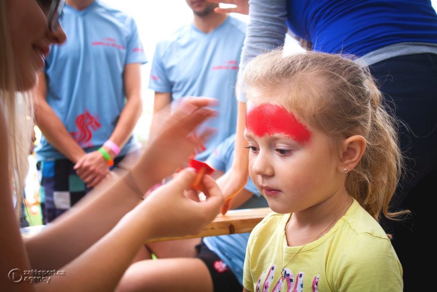 Doprovodný program pro děti začal o hodinu později, a že bylo co vyzkoušet – paddleboardy, bumber bally, fotbalový terč, biatlon, veslování, laserové střelnice, aqua zorbing, nafukovací čluny, jízdy na koních a spousta dalších aktivit, které zařizoval, stejně jako dračí lodě team zaki-sport.cz agency.