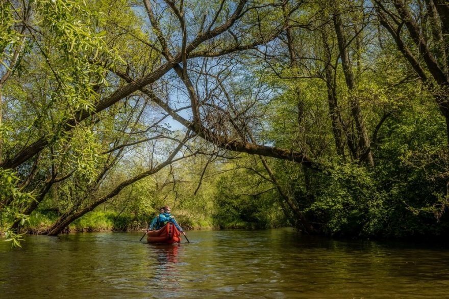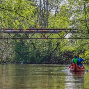 Jednoho slunného jarního všedního dne se s Maruškou, Anetou a Petrem scházíme skoro na konci Dvora Králové. Jsme jen kousek nad zdejší ČOV, u epické vpusti (jak se nadchnul Petr), a chystáme se. Domluva proběhla narychlo, takže je to trochu chaotické, ale za hodinku a kousek už nasedáme na vodu. Petr zahajuje perfektním uklouznutím po bahnitém břehu a zahučí po kolena do vody. „Tak teď už to nemusím řešit,“ uleví si se smíchem a pak už opravdu nasedne. My ostatní jsme opatrnější a za chvíli už podplouváme zrezlou lávku, která je na delší dobu poslední známkou civilizace.