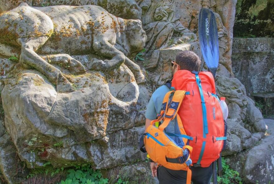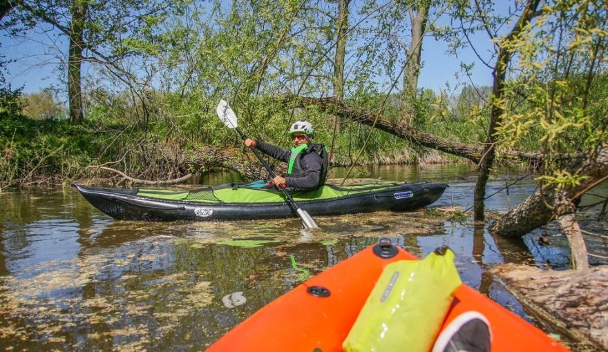 Znovu jsem tedy ve Dvoře Králové u epické vpusti, kde nechávám auto a foukám packraft. Suché věci dávám do batohu Ortlieb Atrack 45, který mi na takovýto druh akce přijde geniální a už si to zase pádluju vstříc labským peřejkám. Od posledně se nezměnil stav vody ani padlých stromů, a protože nefotím, jsem brzy u prvního jezu, druhého jezu i v Kuksu.
