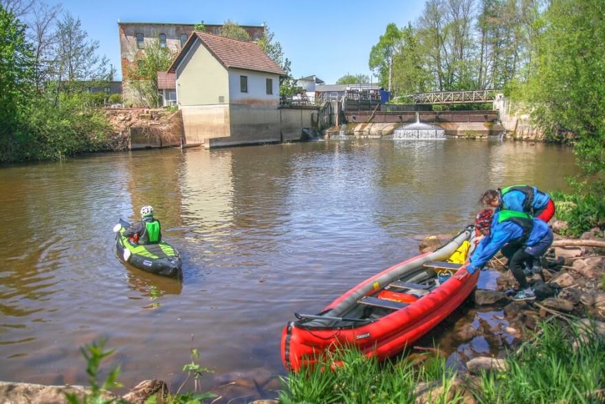 Ten opět čujeme už s předstihem, protože proud pod loděmi rychle zpomaluje. Ani tady ale volej netrvá dlouho a už se před námi na levém břehu tyčí veliký mlýn zvaný Šporkův, toho času sloužící coby penzion a pohostinství.