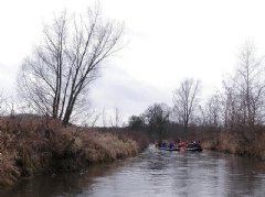 Libor přijíždí načas. Než kluci naloží loď a vše potřebné, nasoukám se do auta. V loděnici je už hodně veselo. „Nazdar Švejku, máš na těch fofr-klackách řetězy?“ „Na, dej si krapet fridexu, ať Ti nezamrznou hokejky.“ Už to, že je člověk mezi kamarády, které delší dobu neviděl, je značnou úlevou od bolesti. Drtiče mrazu v podobě frťanů se však snažím minimalizovat. Musím přeci vidět na cestu a řídit plavidlo. Nasedáme do vyhřátého Santabusu a frčíme do místa startu naší plavby. V busu je tak veselo, že není slyšet motor. Ve Rtyni na nás čekají další účastníci. Místní děti a omladina zaujímá strategická místa pro pozorování všech našich činností. Za ty roky již vědí, odkud je na vše nejlepší přehled.