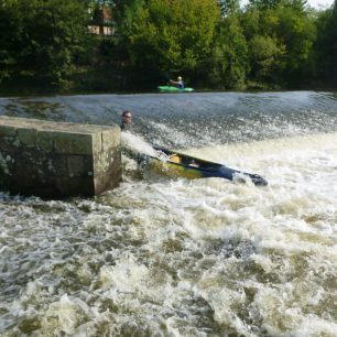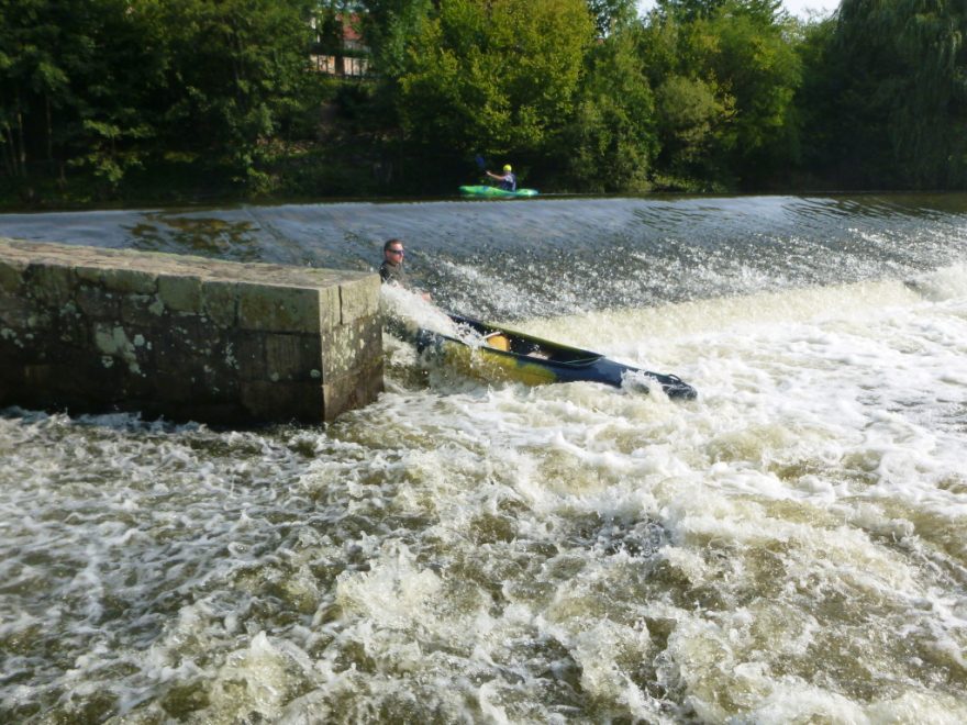 Startovní jez potrápil jako každý rok nejednu posádku, některé si dokonce střihly i nedobrovolnou koupačku. Někteří trefili šutr hned pod jezem, jiní opojeni radostí ze sjetí jezu, podcenili vracák za mostem … :-). Ještě, že předpověď na počasí vyšla.