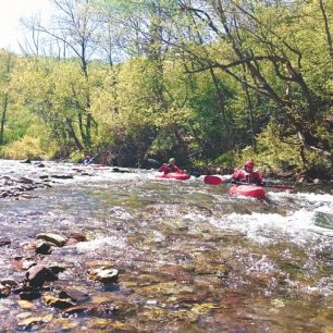 Splavovaný úsek má asi 10 km a nie je ťažký. Začíname pri moste pod obcou Hrenovica. Chvíľu sa smejeme, že po vode to bude rýchlejšie ako po ceste, asi po kilometri na vode ale nachádzame riečku, ktorá priteká z jaskyne. Prezeráme si jaskyňu a uvažujeme, či sa dá ísť hlbšie. Po chvíli prinášame jeden kajak a Joco s Riom sa skúšajú dostať ďalej k miestu odkiaľ rieka vyteká. Nemáme však so sebou čelovky a svetlo z mobilu po pár metroch už nestačí. Kým sa zvyšná časť skupiny snaží kvôli zime založiť oheň na sútoku, Rio ešte splavuje asi najkratšiu rieku vo svojom živote. Pokračujeme v plavbe, trénujeme prejazdy cez prúd a nakoniec končíme nad elektrárňou pri jednom z tunelov.