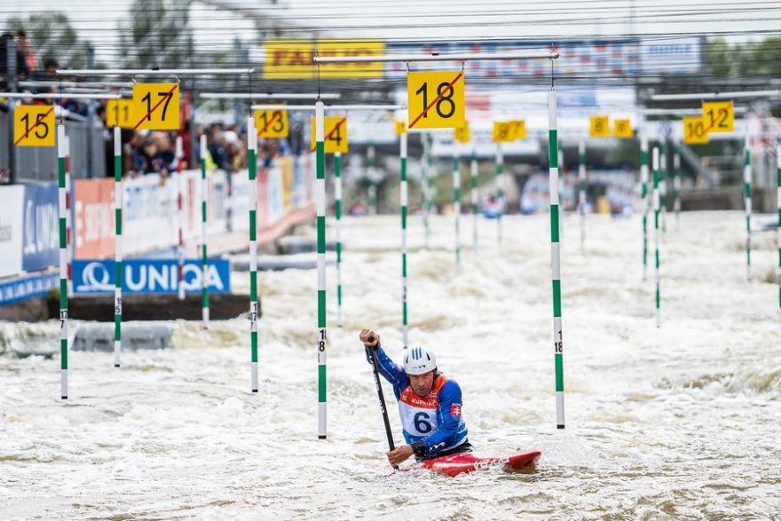Neuvěřitelnou jízdu však poté předvedl Slovák Matej Beňuš, který před plnými a nadšenými tribunami posunul čas o další dvě vteřiny. Loď mu úžasně klouzala a čas 100.26 s byl vhozenou rukavicí zbytku startovního pole. Hned za ním vyjel jeho týmový kolega Michal Martikán, který se však nevyvaroval šťouchu na bráně 4. I kvůli pomalejšímu času tento pětinásobný vítěz celkového hodnocení Světového poháru na podiu nedosáhl. Ani Alexander Slafkovský nepřevedl hvězdný výkon, nabral čtyři trestné vteřiny a zejména problém na brance 10 a velké zdržení ho odsunulo až na poslední desátou příčku.