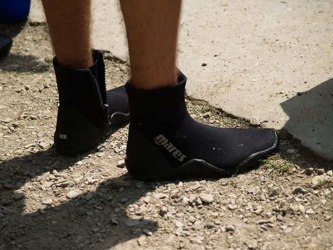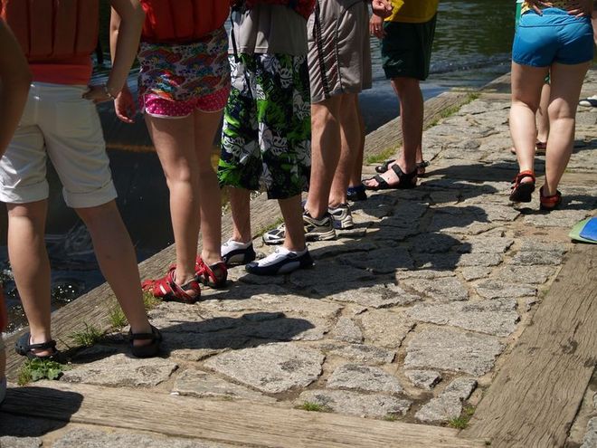 Vodák má sedět, případně klečet v lodi a ne někam kráčet. Z principu věci však vodák pořád někde courá, tu se podívat na jez, na peřej nebo se s lodí plnou vody škrábe na břeh, pročež je obuv nedílnou a často nedoceňovanou součástí vodácké výstroje. Tento článek je součástí společného projektu více článků na téma Obuv.