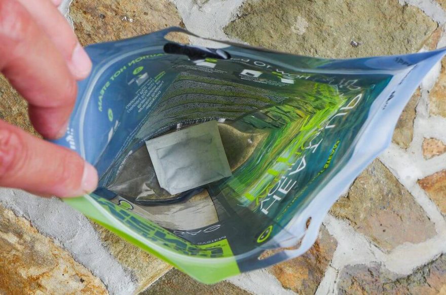 Kromě samotných balíčků s jídlem lze pořídit ještě tzv. survival pack, kde je jídlo zabaleno s proprietami pro samoohřev jídla, případně lze samoohřev dokoupit i samostatně mimo survival pack. Tato možnost nás samozřejmě ihned zaujala a samoohřevný set jsme si k testu vyžádali.