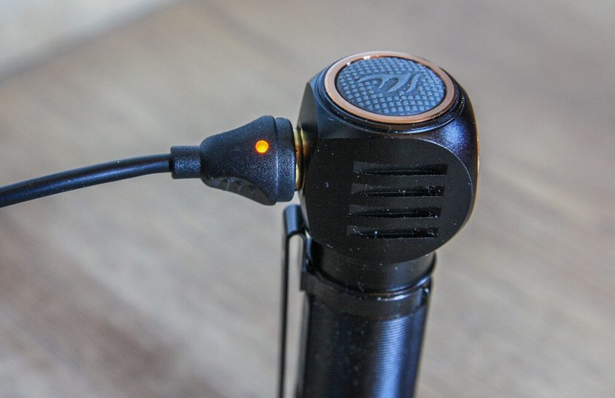 Zajímavým prvkem je u čelovky nabíjení, které lze provádět buď přes magnetický kulatý konektor nebo přímo do akumulátoru, který má vlastní microUSB zdířku a indikaci nabití pomocí diody. Nabíjení magnetickým konektorem hodnotím velmi kladně, protože pro jakékoliv outdoorové použití je to velmi praktické. Jenom velice jednoduše očistíte konektor od případných nečistot / vody, přiložíte kabel a už se nabíjí. Žádné čištění zaneseného microUSB, žádné gumové krytky, které se v rukavicích nebo se zmrzlýma rukama stávají takřka nepoužitelné. Koncovka nabíjecího kabelu je opatřena malou diodou, která svítí buď červeně – nabíjí se, nebo zeleně – už je nabito. Navíc lze čelovku i během nabíjení používat ke svícení, jen se adekvátně prodlužuje doba nabití. Kdo by přece jen lpěl na microUSB, ten vyndá z těla čelovky akumulátor (ten je pochopitelně dokonale chráněn, takže je čistý, suchý) a nabije jej napřímo. Zároveň lze microUSB nabíjení využít například při použití (střídání) dvou akumulátorů nebo při ztrátě kabelu s magnetickým konetorem. Výrobce udává plné nabití akumulátoru za 4 hodiny, což jsem za pokojových teplot ověřil a potvrzuji to.
