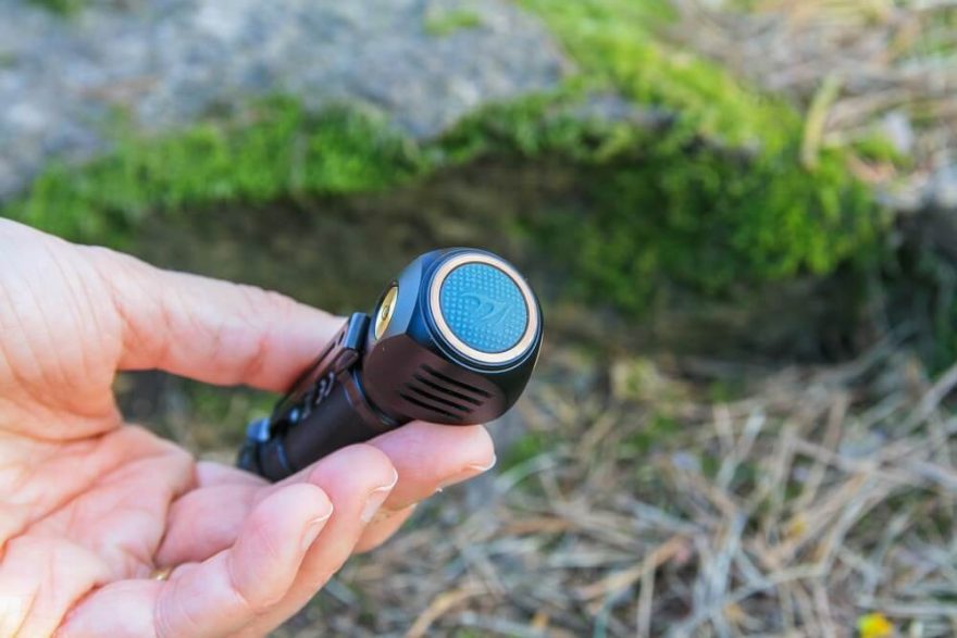 K ovládání čelovky slouží výše zmíněné dostatečně velké ovládací tlačítko kryté příjemně drsným pogumovaným povrchem. Ovládání po celou dobu testování fungovalo perfektně. Delším podržením se čelovka zapne na posledním použitém režimu svícení bílého světla, dvojklikem se čelovka zapne v posledním použitém režimu červeného světla. Toto je moje velmi oblíbená funkce! Krátkými překliknutími se člověk pohybuje mezi jednotlivými intenzitami svícení v červeném nebo bílém světle. Při krátkém stisknutí u vypnuté čelovky se pod ovládacím tlačítkem rozsvítí dioda signalizující úroveň nabití – zelená je OK, blikající zelená stále OK, svítící červená už značí nižší stav a blikající červená znamená stav pod 25 %. Podle informací výrobce tato signalizace funguje pro li-ion akumulátor 18650.