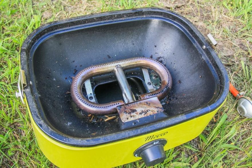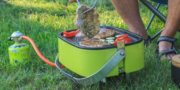 4. Gril je důmyslně seskládaný do kompaktního balíčku, takže se nemusíte starat o nošení žádných dalších věcí bokem, jenom snad o plynovou kartuši, ale ta nezabere žádné místo a člověk je zvyklý ji beztak tahat už když bere do přírody třeba malý plynový vařič.