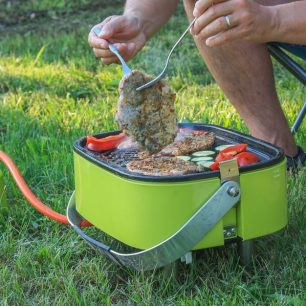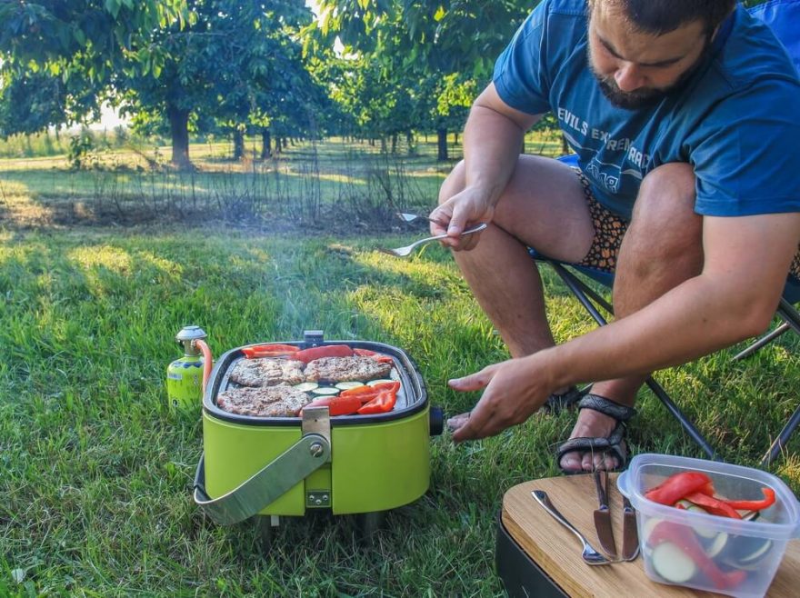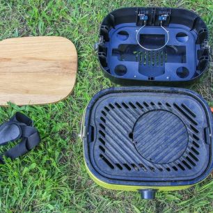 Zkoušel jsem gril také přenášet. Pro nesení v ruce je to v mém podání reálné na vzdálenost maximálně kilometr. S popruhem přes rameno je situace poněkud lepší, ale taky vás to za chvíli přestane bavit a už byste nejraději začali s přípravou jídla. Nicméně na všechna místa, kde jsem si grilování chtěli zkusit (nějaké ty vyhlídky, rozhledny,…) jsme gril dopravili bez problémů. Jako ideální parťák se potom ukázal na cesty autem, kdy jej velmi snadno vyndáte třeba i při pauze na odpočívadle, kde si během chvíle připravíte super jídlo a můžete frčet zase dál.