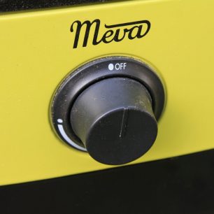 Samotný gril má tvar kvádru s oblými rohy a jeho plechové obvodové stěny jsou vyvedeny ve světle zelené barvě, typické pro značku Meva. Na spodní straně grilu jsou kovové nožky s plastovými koncovkami. U nožiček mi docela chyběla možnost nějakého šroubovacího štelování, které by velmi elegantně řešilo časté potíže s nerovnými povrchy, kterých je v přírodě o hodně víc než těch rovných. Na spodní straně grilu je dále přívod plynu, který je řešený pomocí gumové hadice, na které je standardně koncovka pro připojení kartuše se závitem 7/16. A nakonec je na spodní straně grilu malá vysouvací vanička, do které při grilování stéká omastek a spadávají nečistoty. Vanička toho pojme docela dost, takže i při delším grilování nebyl problém s její kapacitou.