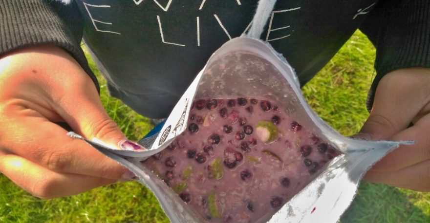 Jídla LYOfood jsou zabalená ve vodo a vzduchotěsných sáčcích. Sáčky mají spodní část naskládanou tak, abyste ji mohli rozložit. Pokud jídlo připravujete přímo ze sáčku, je to velmi praktické, protože sáček naplněný vodou je stabilní. Taková vylitá večeře, když jste pátý den na řece, dokáže opravdu naštvat. Sáčky jsou vkusně designované a na každém je jasný a velký nápis, jaké jídlo najdete uvnitř. Přední strana sáčku obsahuje také informací o gramáži výrobku ve vysušeném i hydratovaném stavu, energetickou hodnotu a info zda je jídlo bez laktózy, lepku atd. Zadní strana obsahuje podrobný návod na přípravu daného jídla (ta se dle typu jídla liší zejména množství vody a délkou přípravy), podrobnější info o složení jídla a o jeho energetické vydatnosti. Zadní etiketa je napůl modrá a napůl bílá. Proč? Modrá barva ukazuje, do jaké výšky byste měli nalít vodu, abyste jídlo připravili správně.