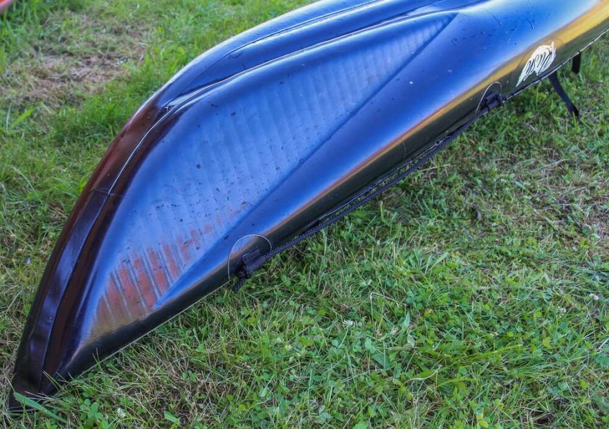 Zajímavější je potom řešení bortů lodi, kde výrobce sáhl k netradiční kombinaci klasických nafukovacích válců, jež jsou v přední a zadní části vyprofilovány použitím drop-stitch technologie. Díky tomuto řešení jsou špice kajaku mnohem ostřejší (lepší hydrodynamický tvar) a lépe tedy mohou rozrážet vodu, což kajak zrychluje a snižuje možnost zalití ve vlnách. Toto řešení je zatím u jiných drop-stitch plavidel v podstatě nevídané a dle našeho názoru nejspíš je to cesta, kam posouvat nafukovací lodě dál.