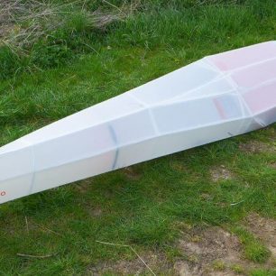 Ne moc, ale aspoň trochu jsem zkusil také odolnost materiálu. Přejel jsem pár kamenů a párkrát trochu nešetrně naboural do břehu, kajak vše ustál bez úhony. Po kamenech zůstane na dně lehká bílá rýha, ale to je všechno, nějaké praskání, odírání nebo jiné poškození materiálu se nekonalo. Při vracení kajaku jsme si všimli vody v několika komůrkách pláště lodi, nicméně výrobce nás hned ubezpečil, že to je zcela normální a voda zase vyteče. Tedy se nejedná o žádnou vadu. Opět malý kompromis za to, že má člověk skládací, originální a za mě neskutečně krásný designový kajak.