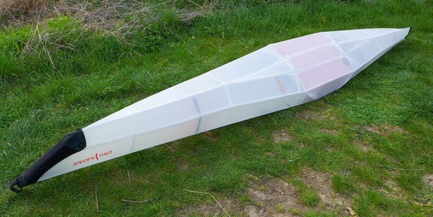 Než se člověk s lodí dostane na vodu, musí jí poskládat. Kajak je vyroben z dvouvrstvého bílého průsvitného polypropylenu, který se skládá zmíněným systémem origami. Ohyby na kajaku jsou jasně definované a v navigaci (to člověk využije zejména při balení kajaku zpět na tvar krabice) pomáhají také černý a oranžový terčík, ke kterým patří příslušně označené cípy lodi. Kdo by čekal, že sestavení kajaku bude intuitivní bude asi zklamán. Ano, není to nic složitého, ale zejména kvůli posloupnosti jednotlivých kroků je třeba zpočátku využít návod. Když při „sešívání paluby“ plastovými lištami zjistíte, že jste ještě měli umístit vnitřní přepážku opravdu to naštve a skládání kajaku výrazně prodlouží. Taky je dobré se dočíst, kam patří všechny díly, které z poskládaného kajaku vypadly.